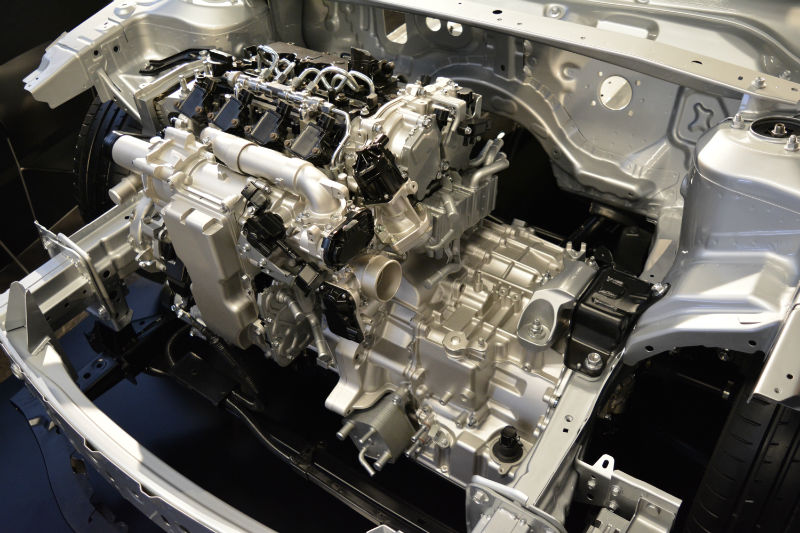 In brief, Mazda’s increased the engine’s compression ratio which drives up torque output. The engine features two types of compression-ignition with a spark (not usually necessary with a compression ignition engine) in order to maintain a lean fuel mixture and keep operating conditions optimized. The bottom line is that, on paper at least, this technology will consume less fuel all the while generate equal or more power. As well, it should provide better throttle response and all the driving pleasure we’ve come to expect from Mazda.