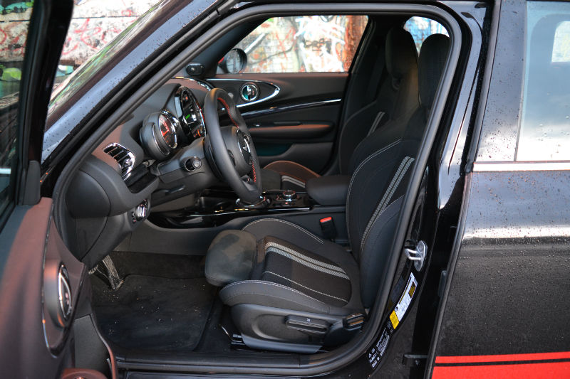 Included with the JCW package are the superb sport seats with integrated headrests, John Cooper Works ALL4 doorsill finishers, anthracite roof liner and a sweet fatty JCW steering wheel. The cabin offers decent overall interior volume, thanks to the extended wheelbase and all manners of technology and connectivity are available.