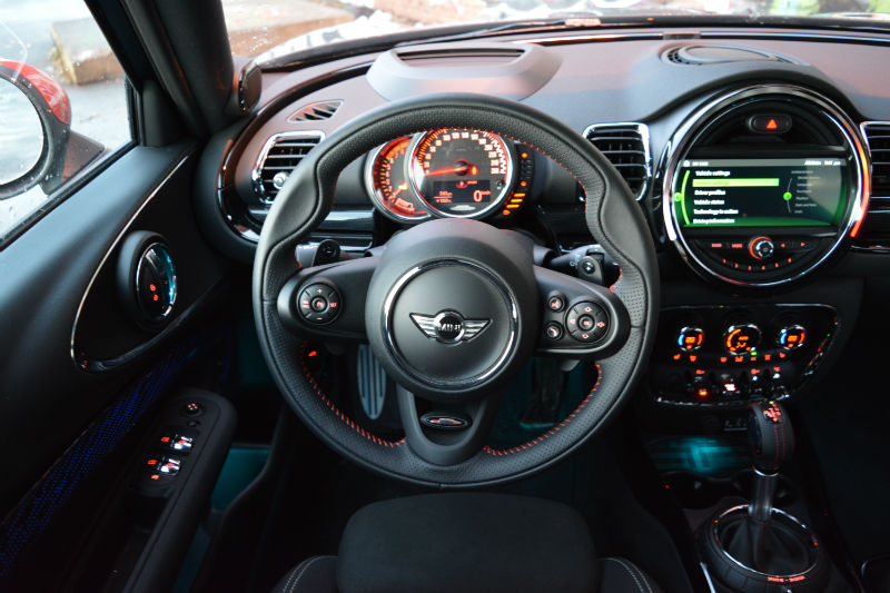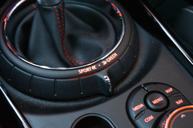 Indoors, the Clubman is all MINI. Here, if you don’t like what you see, then a MINI’s definitely not for you. Of all the things going on, I’d like to point out that the tachometer should be located in the larger of the two gauges because this is a JCW after all. Everything else is just MINI…