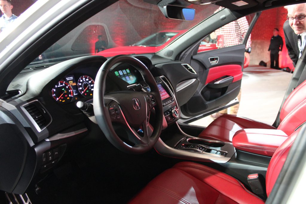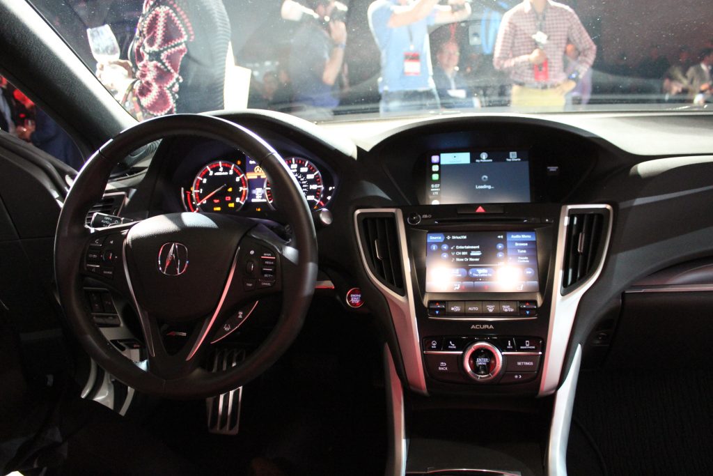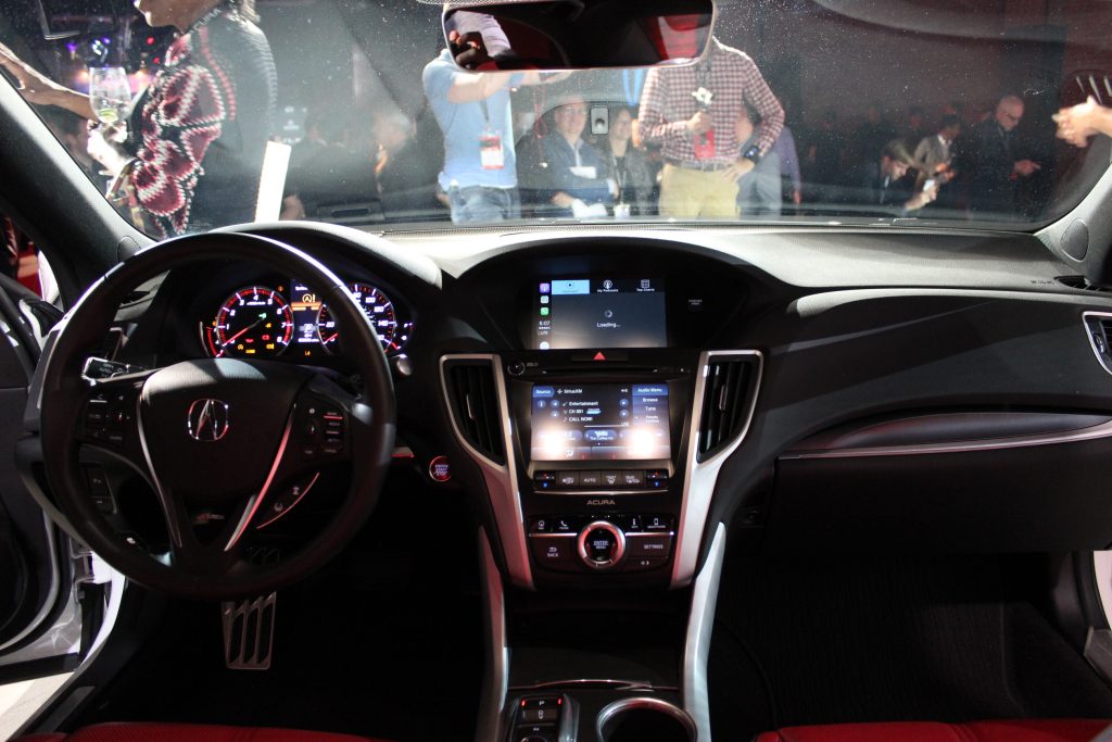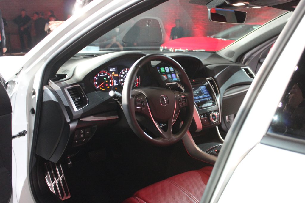 Regarding exterior modifications, Acura gave its new TLX a transformed front fascia, with the brand new signature diamond pentagon grille, slightly redesigned Jewel Eye headlights, a wider stance and new 17 inch wheels. Inside, the TLX gets standard Apple CarPlay and Android Auto as well as standard AcuraWatch safety features that include the Collision Mitigation Braking System (CMBS) with automatic emergency braking, Forward Collision Warning (FCW), Lane Keeping Assist (LKAS), Adaptive Cruise Control (ACC) with Low-Speed Follow (LSF) and Road Departure Mitigation (RDM).