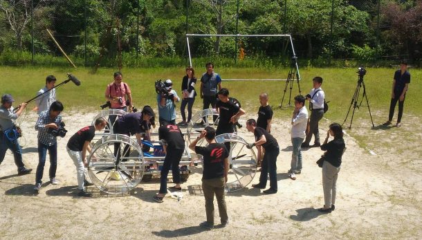 The prototype, called the Sky Drive, uses an aluminum space frame, eight propellers and a number of sensors to fly. Recently, a test flight did not quite take flight, if you will. The Sky Drive hovered to eye level for a few moments before it crash-landed on the attached basketballs. They were intended to cushion the apparatus in the event of a drop but unfortunately; the flying car wouldn’t take off again.